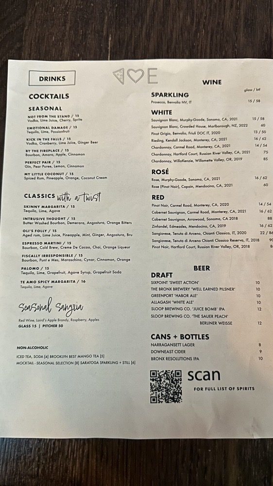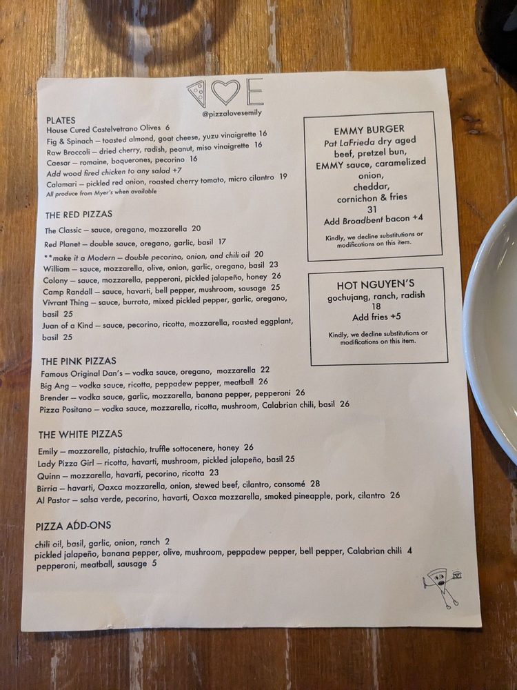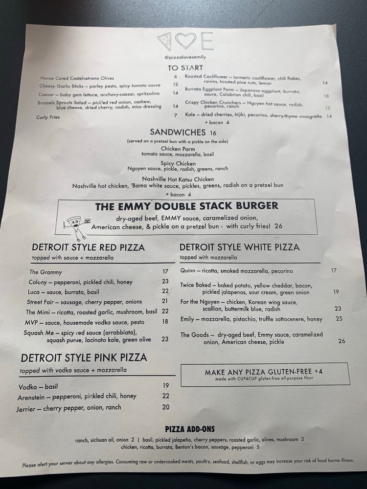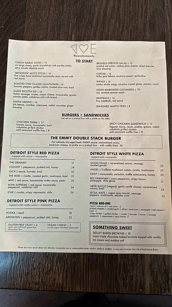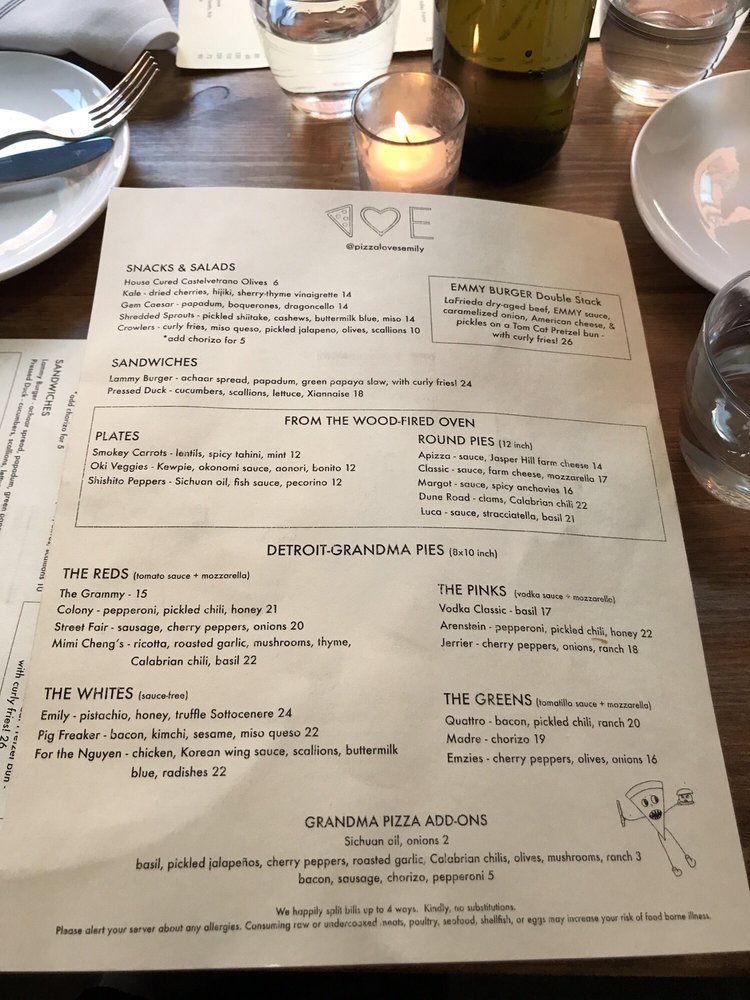 Emily - West Village Menu (Update 2025)
